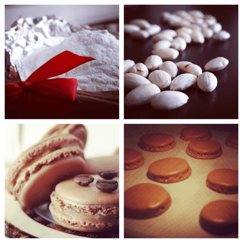 Просеять сахарную пудру с заранее подготовленной миндальной мукой два раза. Поставить смесь в духовку подсушиться при 150 градусах на 10 минут, просеять еще раз. Сверху добавить какао и кофе.