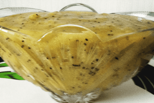 Киви помыть, очистить от кожуры, нарезать небольшими кусочками.