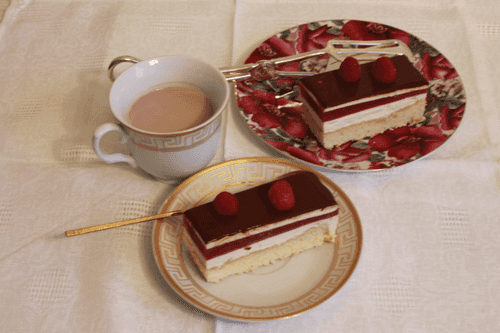 Бисквитные пирожные со сливочным кремом и малиновым желе