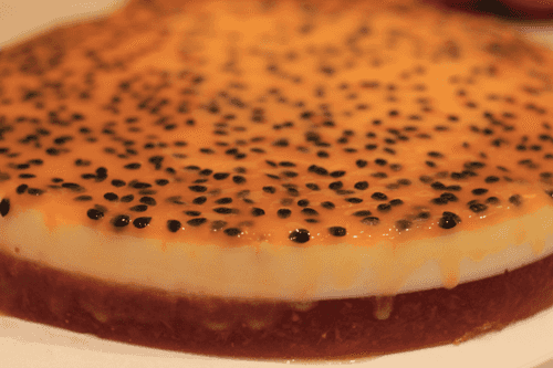Первый слой (Пассифлора) Внутренность пассифлоры сливаем в кастрюльку, насыпаем туда 20 грамм сахара и варим пока пленка с косточек не сойдет и сок будет прозрачным. Когда все будет готово, снимаем с огня, и добавляем в него 12 грамм желатина (из миски). Помешать пока тот не растает. Когда пассифлора остынет (так чтобы на руке не жгло) вылить в форму (я вылила в пластиковую круглую крышку из под коробки для торта) Кладем это дело в холодильник и ждем пока слой не затвердеет (превратиться в плотное желе)