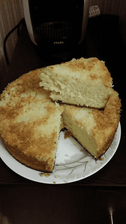 Поставить в разогретую духовку и выпекать при температуре 180–200 градусов около 25–30 минут (зависит от духовки). Следите, чтобы не подгорела кокосовая стружка (минут через 8–10 с начала выпечки можно прикрыть пирог фольгой).