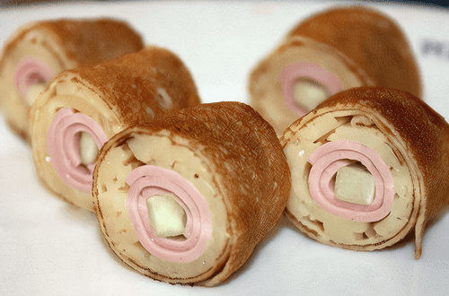 Блинчики с колбасой и сыром — это уютное сочетание тонких, золотистых блинов и ароматной начинки. Блюдо родом из русской кухни, где блины — не просто еда, а символ семейных традиций и теплых встреч. Нежное тесто, пропитанное молочным вкусом, идеально дополняется пикантностью колбасы и мягкостью сыра. Легкий свежий акцент огурца делает вкус сбалансированным. Эти блинчики можно подавать как сытный завтрак или легкий перекус. Они отлично подходят для уютного семейного ужина или праздничного застолья. Завернутые рулетиками, они удобно ложатся в руку, а их нежная текстура и насыщенный вкус дарят ощущение уюта и домашнего тепла.