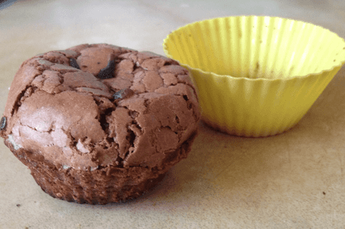 Разложите тесто по формочкам, равномерно. Добавьте маленькие кусочки белого шоколада, но так, чтобы не было видно его из теста.