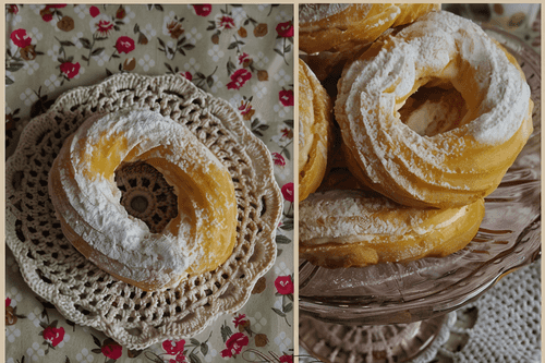 Заварные кольца с творожным кремом – это изысканный десерт французской кухни, рожденный в традициях классического кондитерского искусства. Их основа – воздушное, нежное заварное тесто, которое после выпекания приобретает легкость и золотистую корочку. Особый шарм кольцам придает крем: мягкий, бархатистый творожный мусс с нотками ванили, сгущенного молока и легким оттенком коньяка. Они не только украсят любой стол, но и подарят наслаждение своим нежным вкусом, сочетая в себе легкость теста и насыщенность крема. Подойдут как к праздничному чаепитию, так и к утреннему кофе, создавая атмосферу утонченности и кулинарного шедевра.