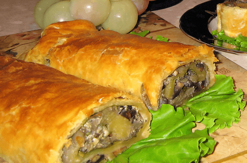 Рулет из слоеного теста с курицей и грибами – это изысканное блюдо русской кухни, которое покоряет своим гармоничным сочетанием нежного теста и сочной, ароматной начинки. Истоки этого блюда уходят в традицию приготовления пирогов, где слоеное тесто придает особую воздушность. Шампиньоны, пассерованные с луком, наполняют фарш насыщенным вкусом, а куриное филе придает нежность. Листья салата добавляют свежие нотки, а запеченная корочка – аппетитную текстуру. Этот рулет идеален как закуска или основное блюдо, его удобно подавать в порционном формате. Он прекрасно сочетается с легкими соусами или сметаной, делая каждую трапезу незабываемой. Простой в приготовлении, но элегантный по исполнению – такой рулет станет украшением любого стола.