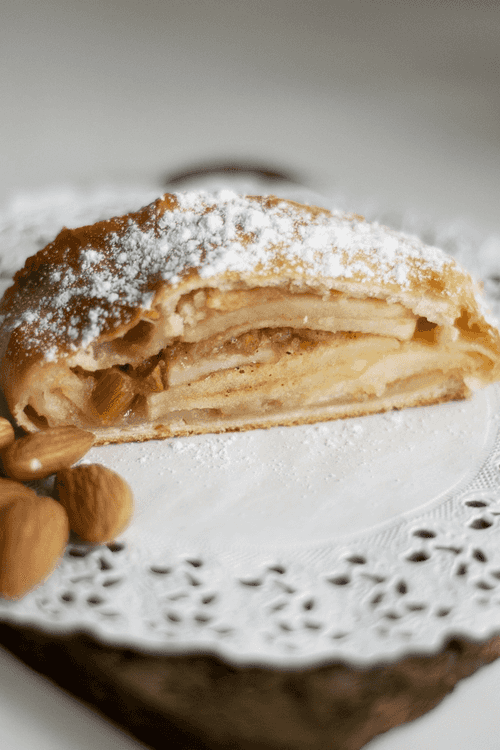 Незатейливый яблочный штрудель — это изысканное сочетание простоты и утонченности. Его корни уходят в традиции европейской выпечки, но он обретает новый облик благодаря авторскому подходу. Нежные яблочные ломтики, пропитанные ароматом корицы и сладостью сахара, создают гармонию вкусов, которая дополняется хрустящей миндальной крошкой и сливочным маслом. Тонкое слоеное тесто превращает начинку в воздушный конверт, а румяная корочка придает аппетитную золотистость. Этот штрудель идеально подходит для уютных вечеров в компании чашки ароматного чая или кофе. А если добавить шарик сливочного мороженого или взбитые сливки, он превращается в настоящий десертный шедевр, способный покорить сердца даже самых взыскательных гурманов.
