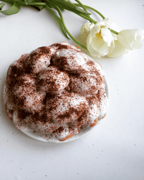 Пока пекутся печеньки, делаем крем. Для этого смешиваем всю сметану с сахарной пудрой до однородной массы. После, 1/3 полученной смеси отделяем и добавляем туда ложку или две какао-порошка (я добавляла порошок горячего шоколада), размешиваем до однородной массы. В результате получится два крема разного цвета — белый и коричневый.