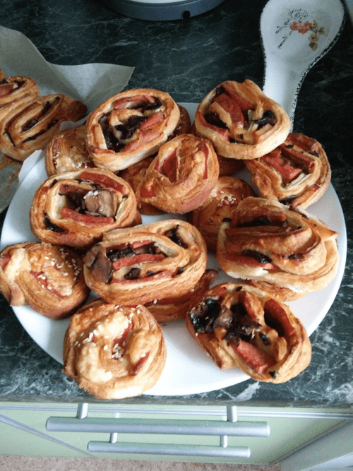 Слоеные булочки с ветчиной и зеленью — это восхитительное сочетание хрустящего теста, нежной сыровяленой ветчины и свежей зелени. Их корни уходят в итальянскую кухню, где слоеная выпечка ценится за свою воздушность и насыщенный вкус. Аромат булочек пробуждает аппетит, а их нежная текстура в сочетании с солоноватым вкусом ветчины и легкой свежестью зелени делает их идеальной закуской или дополнением к основным блюдам. Кунжутные семена добавляют ореховые нотки и придают выпечке изысканный вид. Это прекрасный выбор как для уютного семейного завтрака, так и для праздничного стола, ведь такие булочки легко приготовить и они неизменно радуют своим вкусом и аппетитным видом.