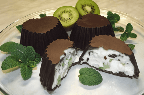 Шоколад растопить на водяной бане или в микроволновке. С помощью силиконовой кисточки тщательно смазать шоколадом формочки. Не жалейте шоколад — пусть слой будет побольше. После того, как все формочки покрылись шоколадом, отправить их в морозильную камеру.