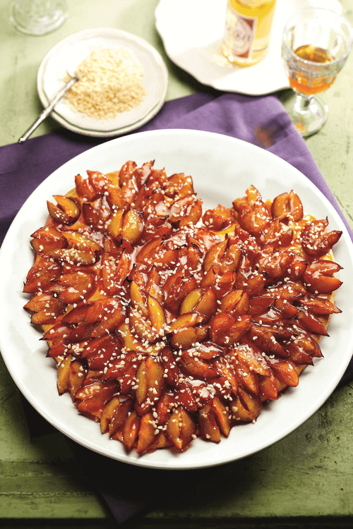 Украшение: протереть через сито абрикосовый конфитюр и довести до кипения в небольшой кастрюле. Залить сливы еще теплым конфитюром и посыпать миндалем. В произвольном порядке посыпать сердце сахаром и подать в теплом виде или холодным.