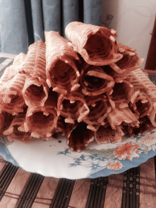 Свежую вафлю можно свернуть в трубочку, рожок или просто сделать слоеный торт, смазав листы кремом или медом. Вафле необходимо придать форму сразу после выпечки, иначе она застынет и начнет ломаться. Будьте осторожны, горячо!