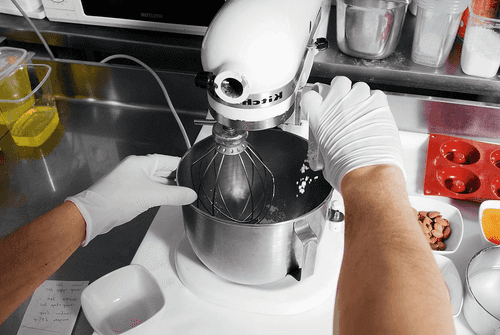 Желток вылить в чашу миксера и взбивать на небольшой скорости около трех минут. Затем, не выключая, начать вливать сироп: делать это нужно медленно, чтобы струйка сиропа была совсем тонкой, так все будет смешиваться равномерно. Когда весь сироп окажется внутри, оставить миксер работать — cмесь в процессе должна остыть и обрести ровный кремовый цвет.