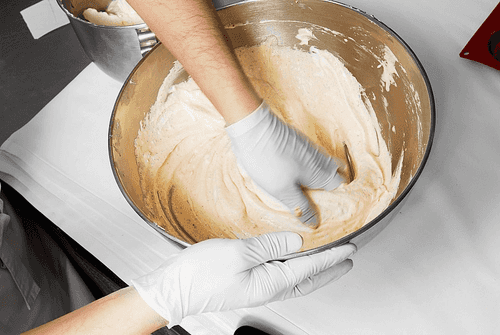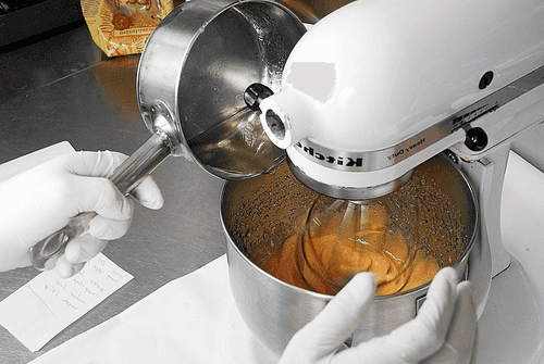 Аккуратно ввести в смесь взбитые сливки. Делать это нужно руками в несколько приемов, перемешивая так же, как лопаткой, — снизу вверх. В результате получается очень нежная, воздушная масса.