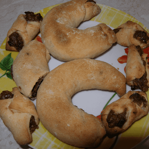Мустаччоли — это традиционное итальянское печенье, имеющее древние корни, уходящие в эпоху Средневековья. Его название происходит от латинского слова 'mustaceum', означающего мускатный орех, который часто использовали в рецепте. Это лакомство сочетает в себе сладость меда, терпкость орехов и свежесть апельсиновой цедры, создавая восхитительную гармонию вкусов. Тесто, замешанное на молоке и топленом сале, обладает мягкостью и насыщенным ароматом. Начинка из орехов, меда и корицы придает выпечке богатый и теплый вкус. Эти маленькие трубочки идеально подходят для уютных вечеров с чашкой кофе или ароматного чая, а также могут стать украшением праздничного стола. Готовится мустаччоли в духовке до золотистой корочки, и каждый кусочек приносит с собой частичку итальянской гастрономической истории.