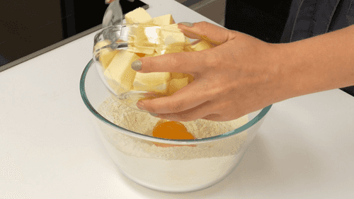 Смешать всю муку, сахар и лимонную цедру, добавить размягченное сливочное масло и яичные желтки. Руками вымесить тесто (оно должно получиться мягким и липким), при необходимости добавить чайную ложку холодной воды, накрыть влажным кухонным полотенцем и оставить отдохнуть на час.