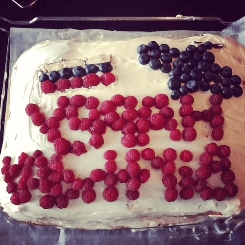 Делаем таким же образом еще 3 коржа. Все коржы выкладываем один на другой. Бока смазываем сметанным кремом. Сверху украшаем по своему желанию.
