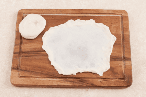 Выложите блин на сухую чистую поверхность и растяните до полупрозрачного состояния.
