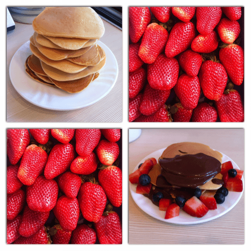 Американские панкейки с горячим шоколадом и ягодами