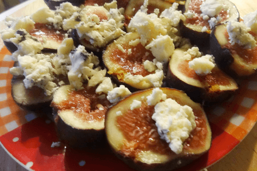 Красный спелый инжир разрезать пополам, подавать с сыром.