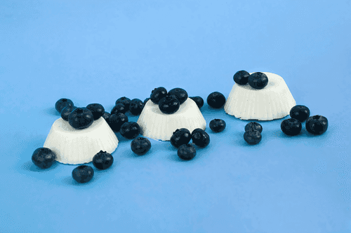 Перед подачей вынуть панна-котту из формочек, перевернуть на тарелку и украсить голубикой.