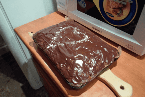 Добавить в массу кусок сливочного масла и варить далее снова до кипения, пока шоколад не загустеет.