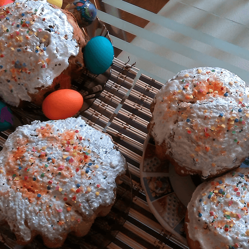 Пасхальный кулич с изюмом — это традиционное русское праздничное угощение, символизирующее обновление и свет. Его история уходит в глубину веков, когда славяне готовили особый сладкий хлеб к Пасхе, отмечая наступление весны. Кулич имеет нежную воздушную текстуру, сладкий, сливочный вкус с мягкими нотками ванили и ароматным изюмом, который придаёт ему изысканность. В процессе приготовления важно соблюсти правильное брожение теста, чтобы кулич получился легким и пористым. Его принято подавать к праздничному столу, украшенным белоснежной глазурью и разноцветными присыпками, сопровождая разговорами и радостью. Этот кулич не просто сладкая выпечка — он несет в себе вековые традиции и семейное тепло.