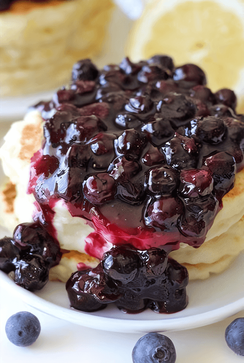 Лимонные блины с рикоттой и черничным соусом