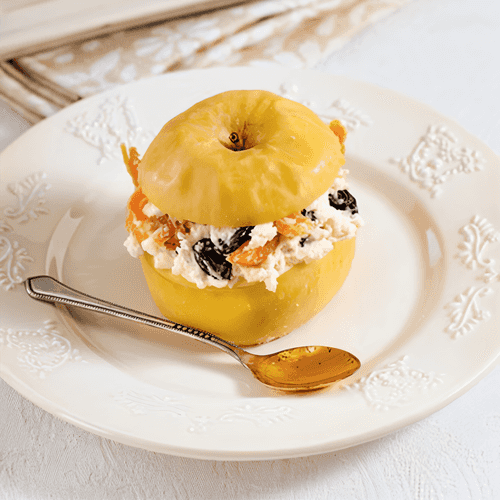 Печеные яблоки, фаршированные творогом, – это уютное и простое блюдо, которое напоминает о деревенской кухне Европы. Запеченные фрукты обретают нежную сладость, а творожная начинка придает им мягкость и насыщенный вкус. Исторически яблоки запекали еще в средневековой Европе, используя разные начинки – от орехов до меда. В этом варианте творог добавляет свежесть и легкую кислинку, балансируя естественную сладость яблок. Это блюдо идеально как легкий десерт, подаваемый теплым, возможно, с ложкой меда или корицы. Его можно готовить для уютного семейного вечера или как здоровый перекус, наслаждаясь натуральностью и насыщенными ароматами запеченных фруктов.