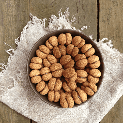 Разогрейте духовку до 160 градусов. Доставайте охлажденные колбаски теста по одной за раз, режьте тесто на небольшие кусочки и скатывайте из них миниатюрные шарики весом примерно 5 грамм каждый. Разложите шарики на поддоне, выстланном пекарской бумагой, на расстоянии примерно пары сантиметров друг от друга и выпекайте в течение 12–15 минут до румяного золотистого цвета. Аналогичным образом выпекайте оставшиеся партии охлажденного теста. Остудите до комнатной температуры.
