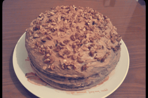 Торт с маком, орехами, изюмом и шоколадным кремом