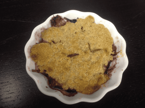 Для теста крамбла пробейте в блендере 4 штуки овсяного печенья, 50 грамм масла комнатной температуры, сок половины лимона и 50 грамм сахара.