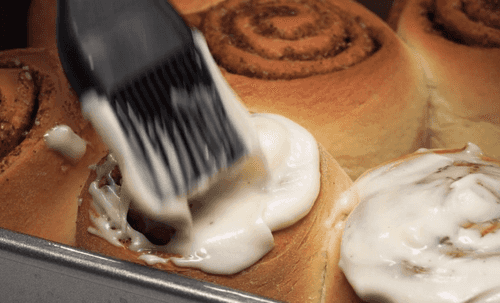 После того, как булочки подрумянились и готовы, вынуть их из духовки и сразу покрыть сливочной смесью (можно смазать кисточкой, а можно и залить). В конце можно украсить по желанию тертым шоколадом или орешками. Но оригинальный вкус ни с чем не сравнить.