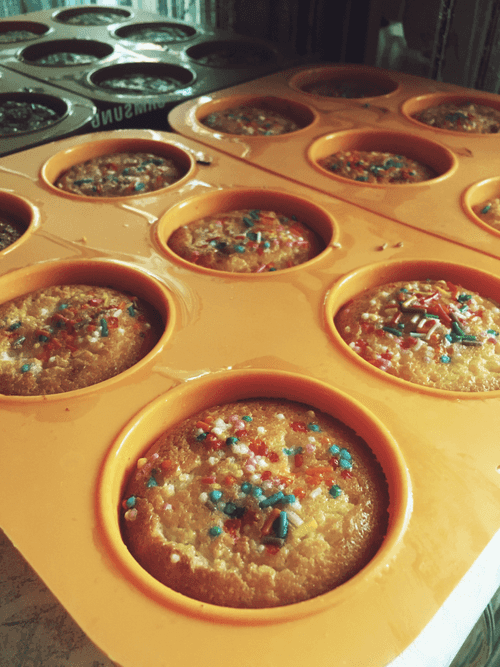 Разложите тесто в силиконовые формы для выпечки на 2/3, поскольку тесто поднимется.