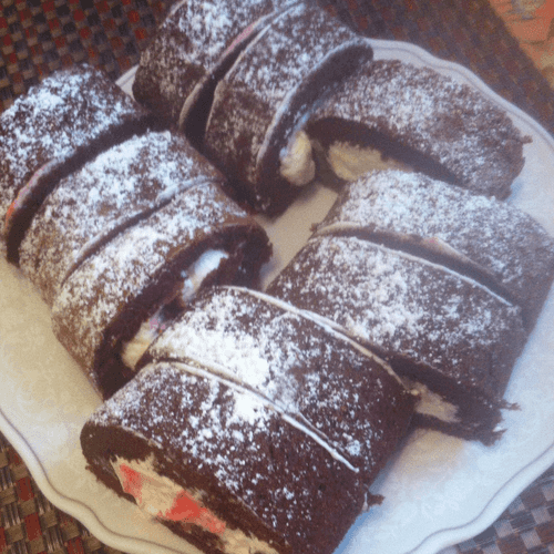 Шоколадный рулет с вишней и взбитыми сливками – изысканный десерт европейской кухни, который покоряет сочетанием воздушного бисквита, нежного сливочного крема и сочной кисловатой вишни. Его история восходит к традиционным рулетам, популярным в европейской кондитерской культуре, где тонкое тесто сворачивали с различными начинками. Богатый шоколадный вкус теста гармонирует с легкостью взбитых сливок, а вишня придает приятную свежую кислинку. Этот десерт идеально подходит как для праздничного застолья, так и для уютного чаепития. Его текстура мягкая, но упругая, а баланс сладости и кислинки делает каждую порцию неповторимой. Слегка охлажденный, он становится еще более изысканным, раскрывая глубину вкуса шоколада и фруктов.