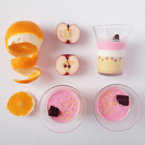 Получившуюся жидкость разлить в миски. В одну добавить для цвета сок смородины или сок свеклы. В другую — немного пюре банана. Вместо натуральных красителей можно использовать покупные пищевые.