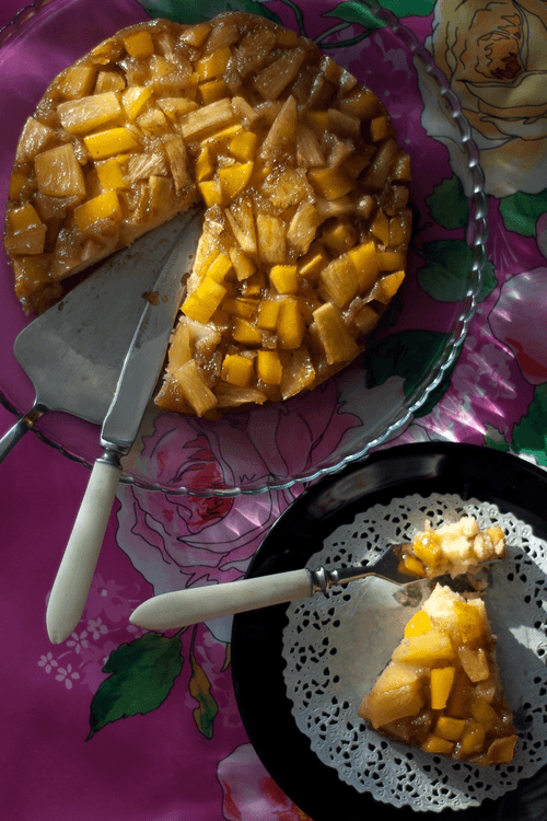Ананасово-манговый пирог — это изысканный десерт, который сочетает в себе тропическую сладость ананаса и нежную кислинку манго. Этот пирог имеет корни в европейской кухне, где карамелизированные фрукты часто используются для придания выпечке насыщенного вкуса. В его основе легкое воздушное тесто, обогащенное ванильными нотами, а фруктовый слой, пропитанный карамельным соусом, делает каждый кусочек особенным. Подается теплым, с хрустящей золотистой корочкой, он идеально сочетается с шариком ванильного мороженого или чашкой ароматного чая. Этот пирог прекрасно подойдет как для уютных домашних вечеров, так и для праздничного стола, даря каждому гостю частичку солнечного вкуса. Его простота в приготовлении и изысканный результат делают его любимым рецептом для кулинарных экспериментов.