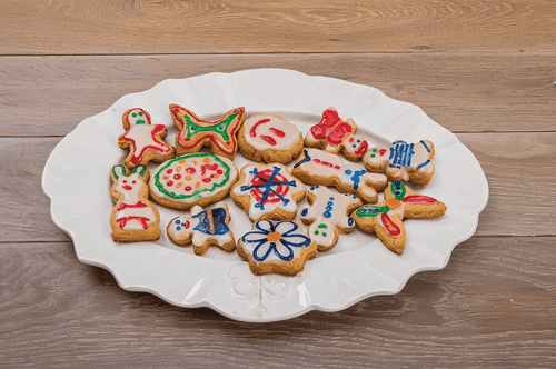 Смажьте печенья глазурью, дайте подсохнуть, раскрасьте печенье с помощью карандашей с красителями; можно сделать отверстие для ленточки и повесить печенье на елку.