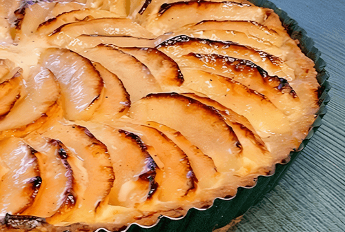 Яблочный тарт со сметаной — это классическое французское лакомство, сочетающее нежное рассыпчатое тесто и ароматную фруктовую начинку. Франция славится своими тартами, и этот вариант с яблоками особенно любим за свою утонченную простоту. Хрустящее тесто, пропитанное сливочным вкусом, идеально дополняется тонкими дольками яблок, которые карамелизуются в процессе запекания, приобретая мягкость и насыщенный вкус. Легкая кислинка сметаны делает вкус более сложным, а абрикосовый джем добавляет сладкую и немного пряную ноту. Этот тарт прекрасен как самостоятельный десерт или в сопровождении шарика ванильного мороженого или взбитых сливок. Его подают как теплым, так и холодным, наслаждаясь балансом сладости и свежести, который делает его идеальным дополнением к чашке ароматного кофе.