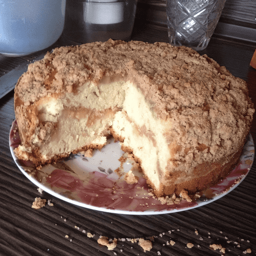 Смешайте муку (150 грамм), сахар, корицу и соль в небольшой миске. Холодное сливочное масло нарежьте небольшими кубиками и добавьте в сухую смесь. Хорошо перетрите все руками в крошку. Уберите в холодильник до использования.