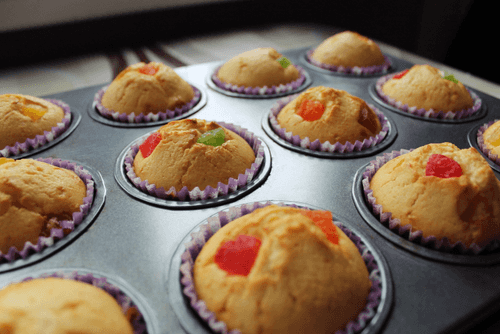 Разложить в формочки для маффинов и печь 25 минут при 180 градусах.