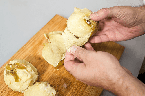 Яблоки запекать в духовке при температуре 180–200 градусов в течение примерно получаса. Когда кожица треснет и яблоки внутри станут мягкими, вынуть их из духовки, остудить, очистить от кожицы и сердцевины и переложить мякоть в сито.