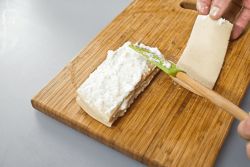Выложить прямоугольники стопочкой один на другой, промазав каждый слой оставленной яблочно-белковой массой (в зависимости от использованной формы может получиться три или даже пять-шесть слоев). Подсушить в духовке еще два часа при 70 градусах.