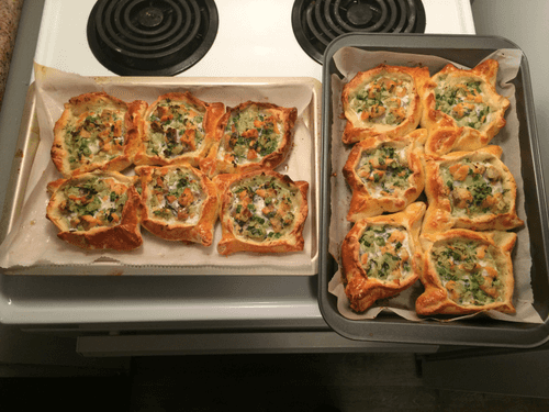 Скатайте из теста шарики размером с пинг-понговый мяч каждый. Раскатайте их в лепешки, в центр каждой выложите фарш. Защипните края пирога.