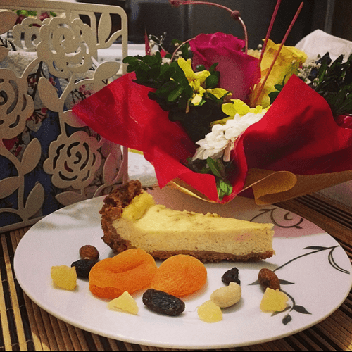 Духовку выключить и оставить чизкейк в духовке с открытой дверцей, пока он не остынет (это предотвратит песочную основу от разламывания), после чего убираем в холодильник.
