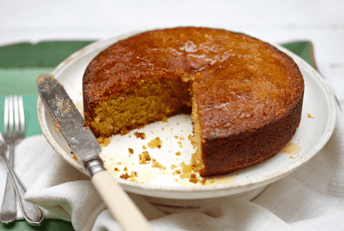 Когда пирог полностью остынет, сделайте в нем маленькие отверстия с помощью зубочистки и ложкой распределите пропитку равномерно по поверхности пирога.