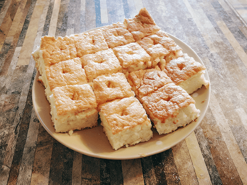 Остывший до половины кох нарезать на части и залить молоком (горячим) в той же сковороде, где готовили. Молоко должно впитаться в пирожные ПОЛНОСТЬЮ.