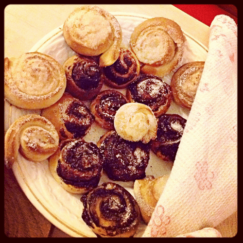 Сладкие сдобные булочки с шоколадной пастой