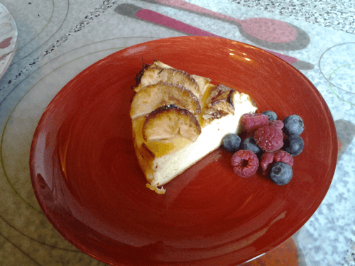 Пока запеканка выпекается, чистим яблоко, освобождаем его от сердцевинки и режим на тонкие ломтики.