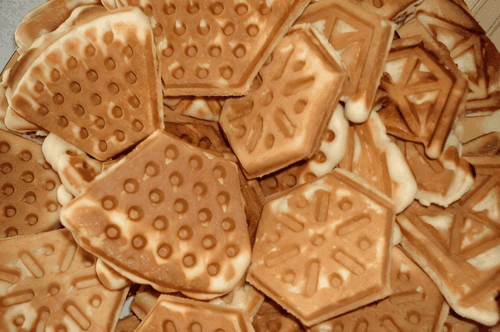 Держать форму 2–3 минуты на одной стороне и еще 2–3 минуты на другой. Таким образом подрумянив печенье до желаемого цвета.