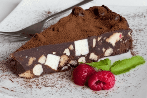 Ставим в холодильник для застывания, на 3 часа. Затем вынимаем из формы, кладем на блюдо и посыпаем какао. До подачи держим в холодильнике.